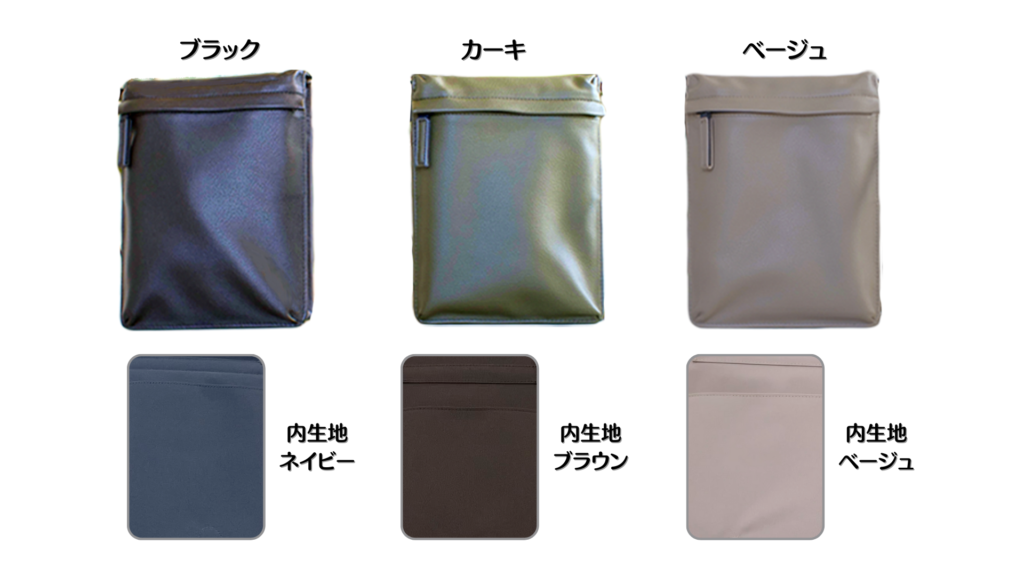 ■ポーチの内生地カラー:ブラック:ネイビー、カーキ:ブラウン、ベージュ:ベージュ