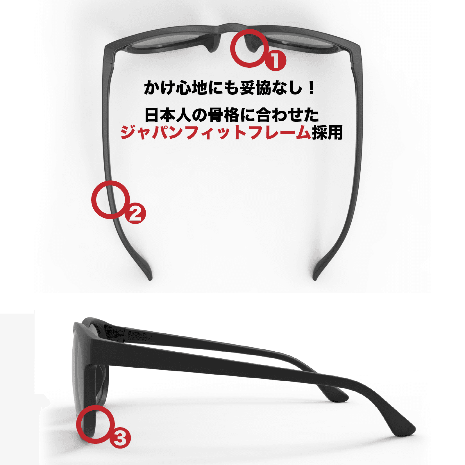 アジア人の骨格に合わせて、フレームカーブやノーズパッドが作られたアジアンフィットフレームを採用しています。