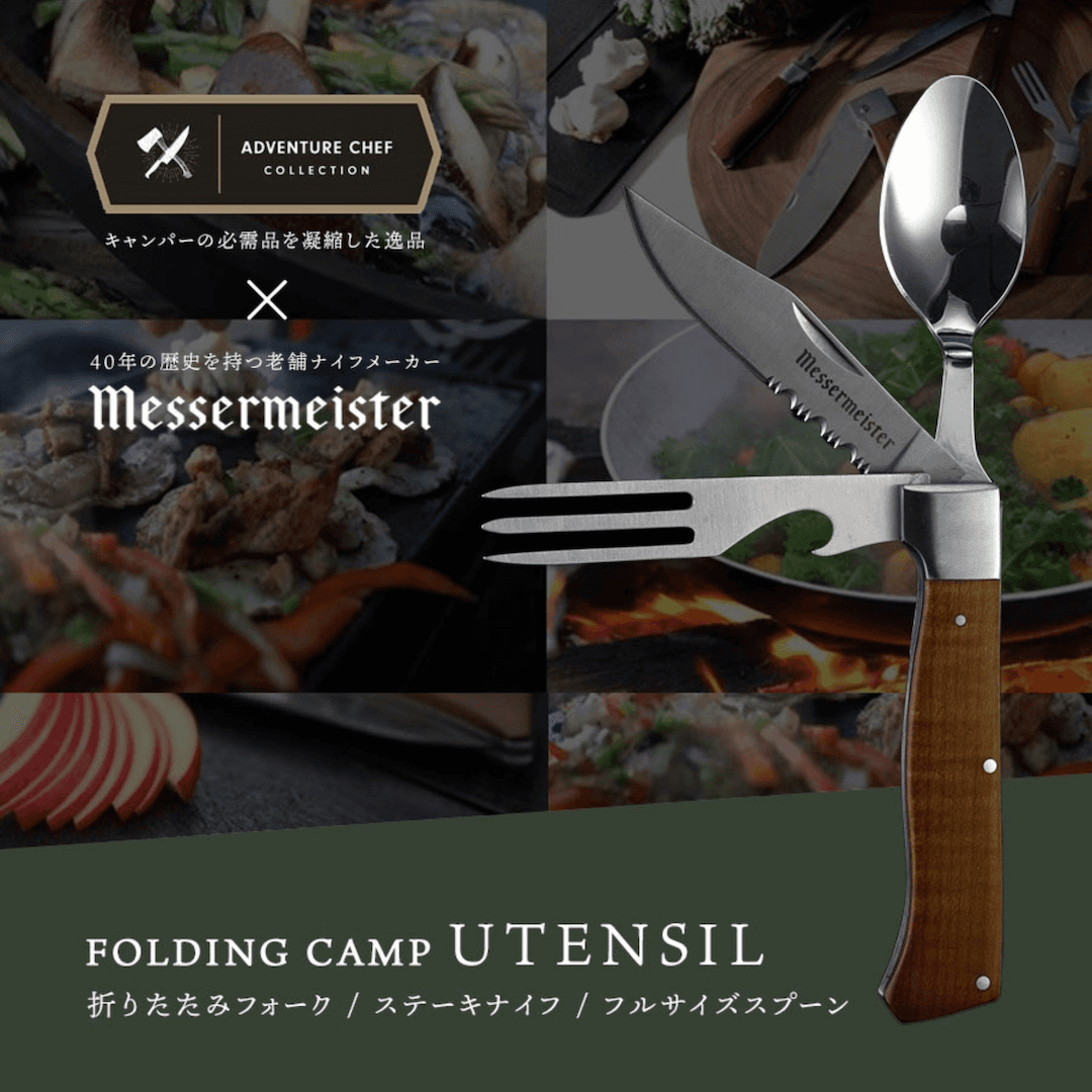 『Adventure Chef Collection』の人気No.1商品、キャンプ仕様の折り畳み万能カトラリー。