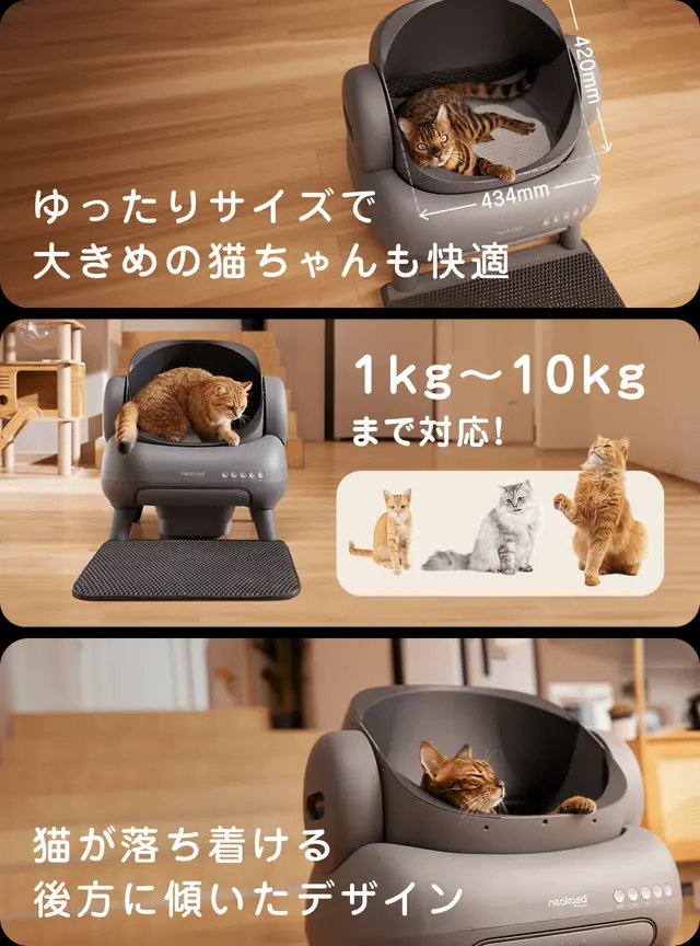 Neakasa M1は全開放式、自動で排泄物を掃除するスマート猫トイレです。