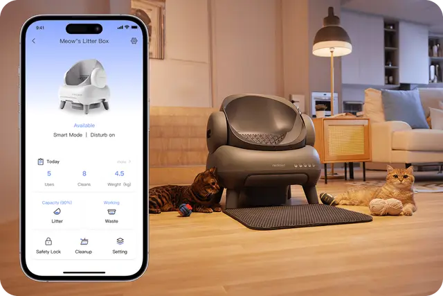 Neakasa M1は専用アプリでより便利にお使いいただけます。外出先から猫のトイレの時間や回数を確認したり、掃除のタイミングを遠隔操作したりすることが可能です。
