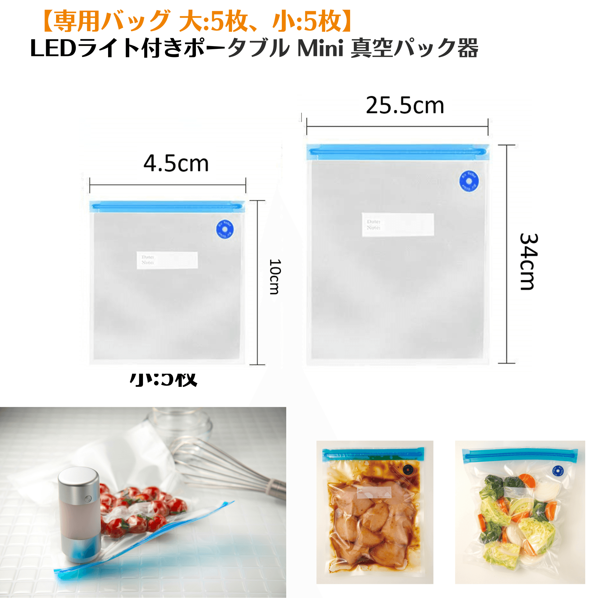 【専用袋のみの販売】ポータブル真空パック器(小:5枚、大:5枚)