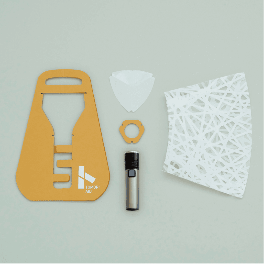 デザインxあかりの防災!懐中電灯をランタンに変身させる照明キット「TOMORI AID」