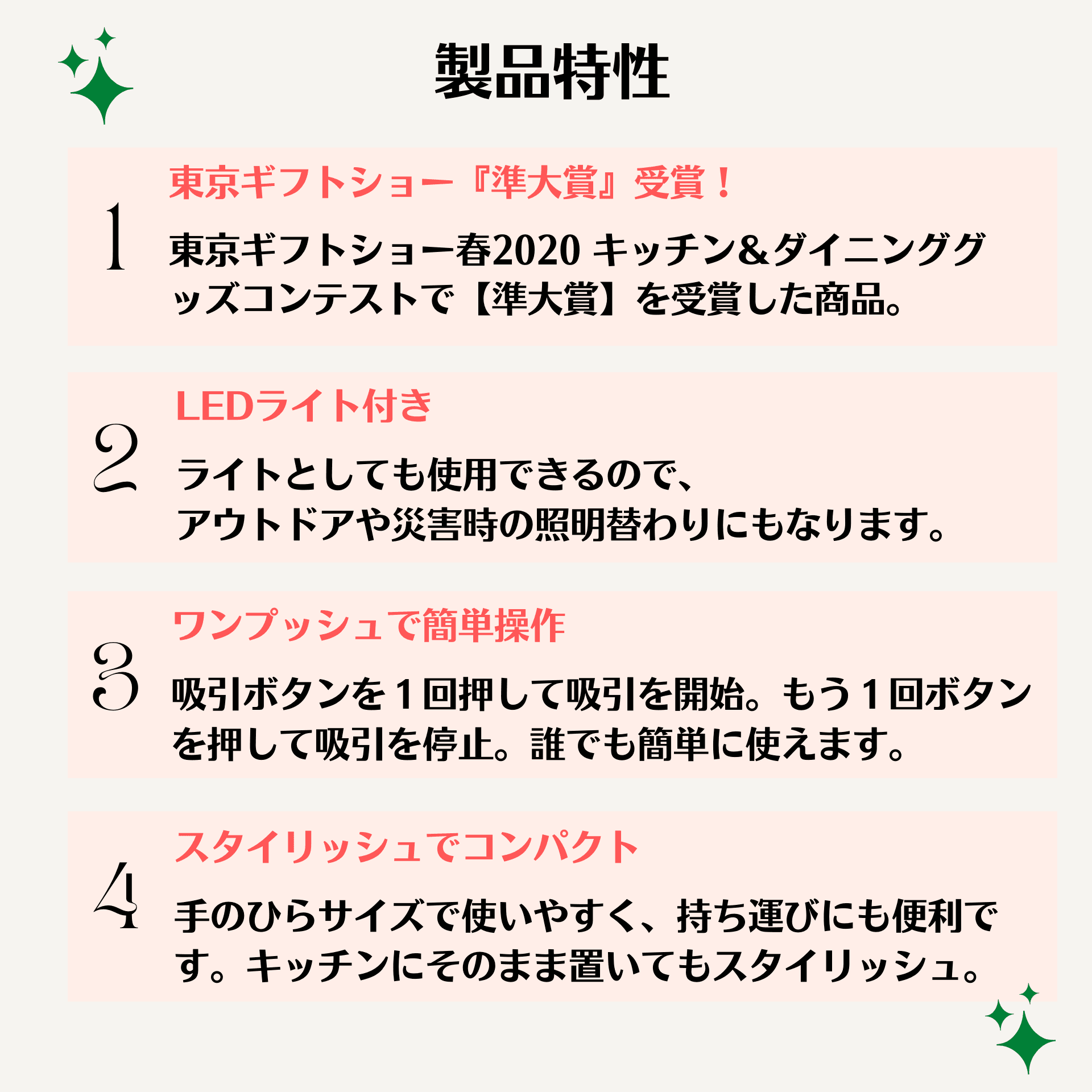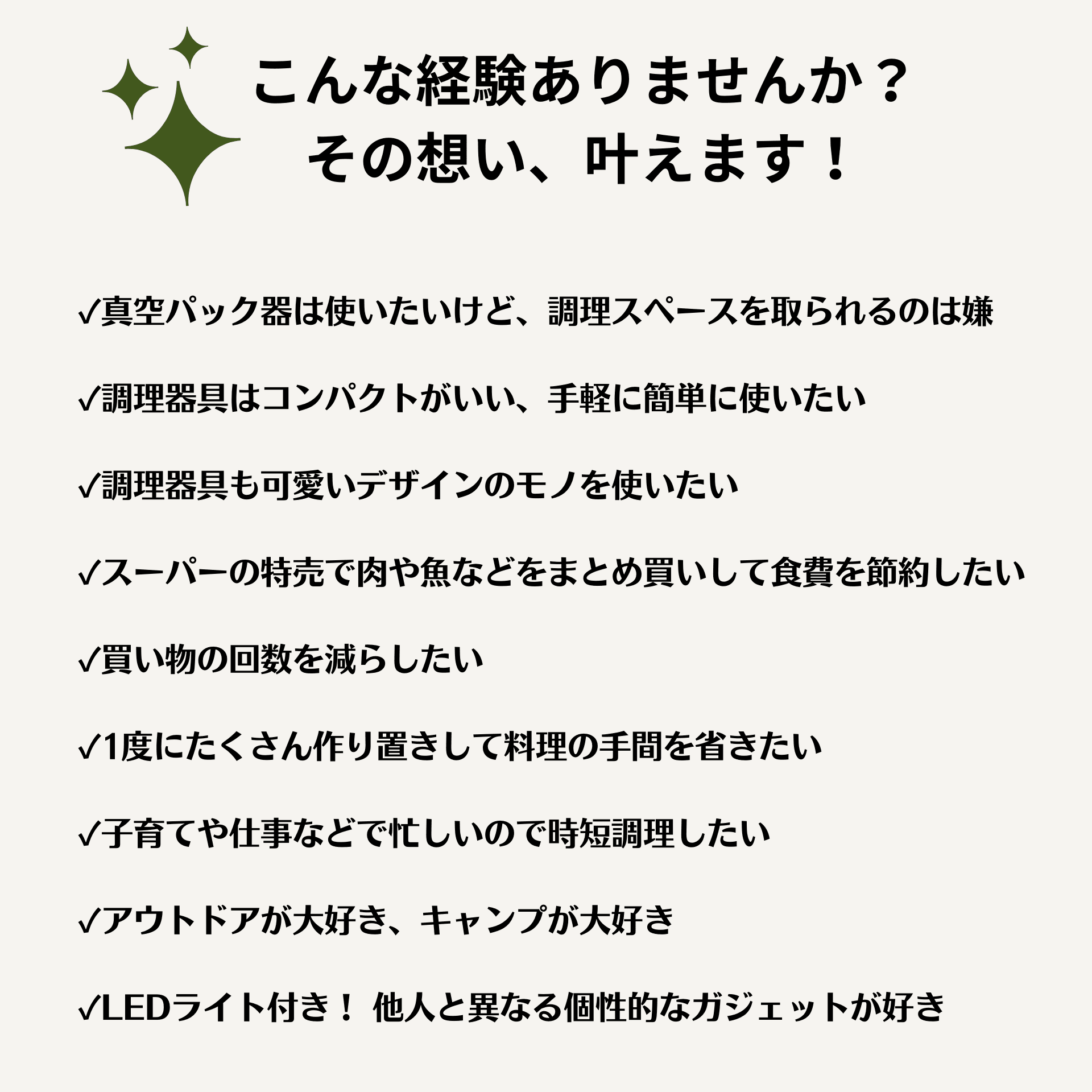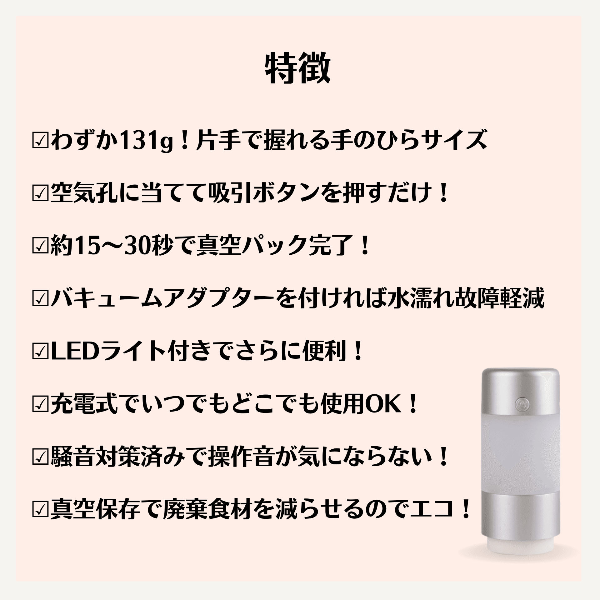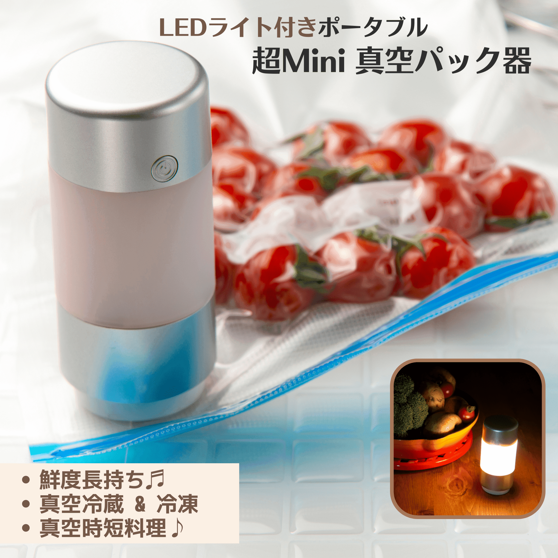 ポータブル真空パック器 -食品ロスに貢献!、アウトドアにも活躍!LEDライト付き