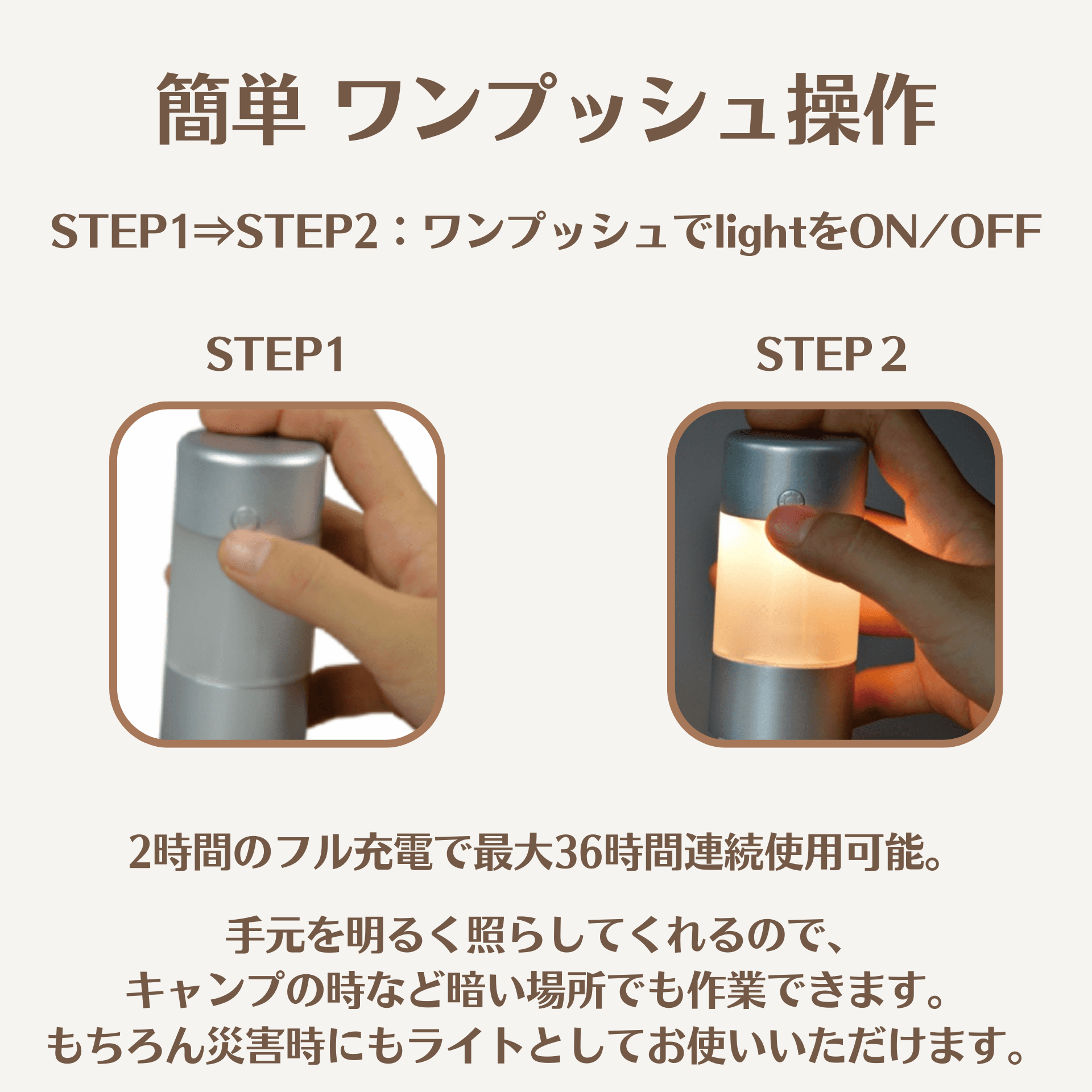 〇アウトドアシーンでも大活躍!夜のキャンプで重宝するLEDライト付き。